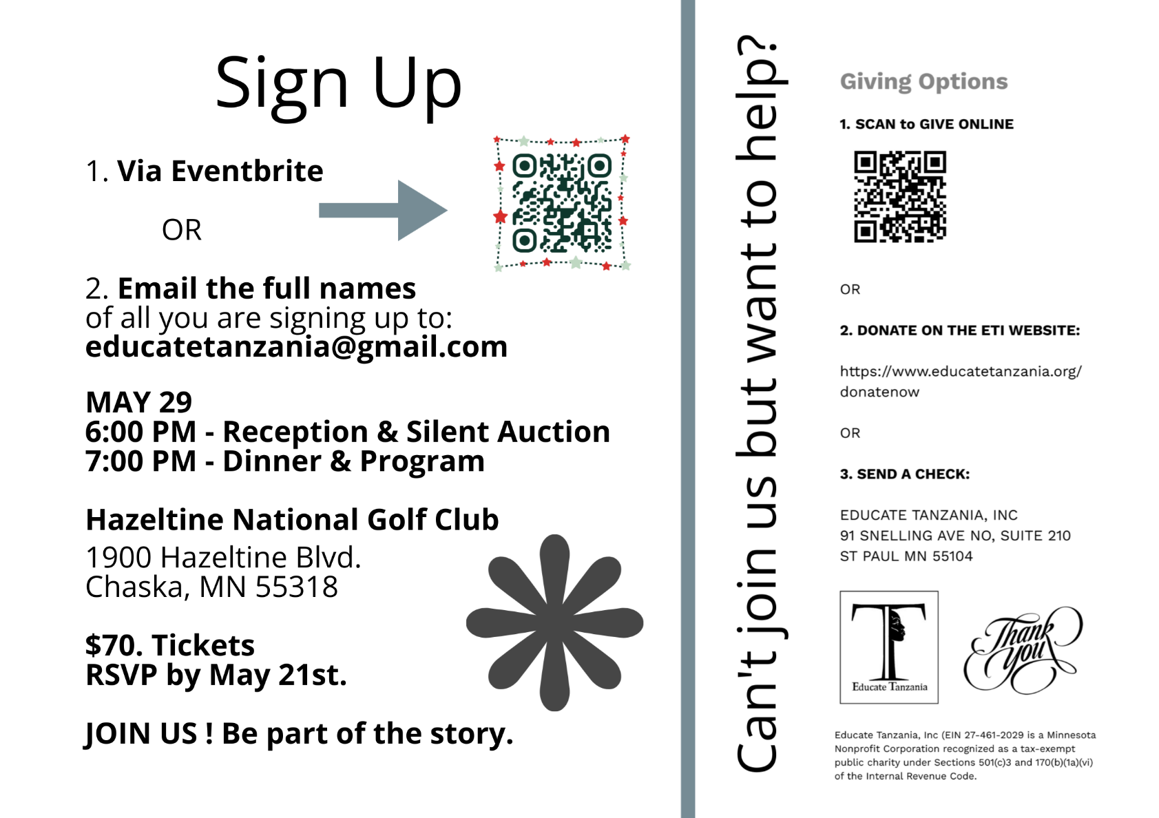 All donations given at the gala will be sent directly to Karagwe to bring nutritious food to Tanzania!